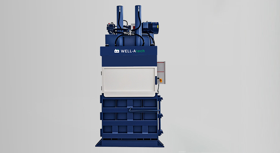 WELL-Atech WEV series vertical baler is multifunctional, automatic output mode. Automatic push-button control,safe and convenient.Safety interlock device to ensure the safety of operators. High strength frame, using well-known brand accessories, make its service life long.